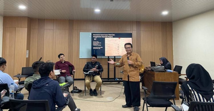 Lonjakan jumlah surat suara tidak sah dalam Pilkada Pemalang 2024 menjadi sorotan dalam seminar yang digelar Laboratorium Ilmu Politik FISIP Universitas Jenderal Soedirman (UNSOED), Rabu 26 November 2025. Seminar bertema “Kajian Surat Suara Tidak Sah dalam Pilkada: Pola, Penyebab, dan Tantangan” itu berlangsung di ruang J101 dan dipandu dosen Ilmu Politik, Titis Perdani.